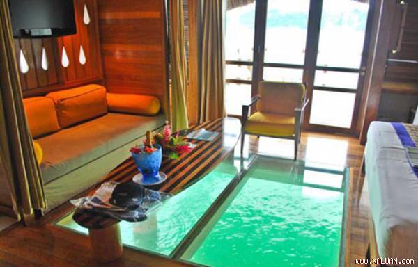 Dù vậy, nhiều người vẫn thích loại sàn này bởi vẻ đẹp ấn tượng. Phòng khách sinh động và sáng bừng nhờ sàn trong suốt lấp loáng nước biển.
